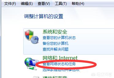 2、在打开的“控制面板”中点击“网络和Internet”下的“查看网络状态和任务”。