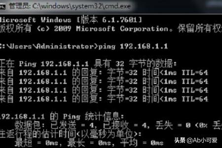 3、按WIN+R打开运行,输入:CMD,在命令后输入“ping 192.168.1.1”查看网络连接状态,看是否有丢失数据。以上环节中,若有一项环节没有出现结果,就可以知道网卡已经损坏,可以考虑进行修复或者更换。