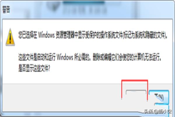 6.弹出警告,点击是。这是为了保护系统文件而设置的,如果是误操作就选择否了。