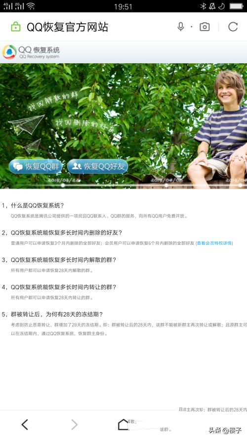 8、使用百度浏览器打开上一步中说到的地址,进到QQ恢复官方网站界面,如图