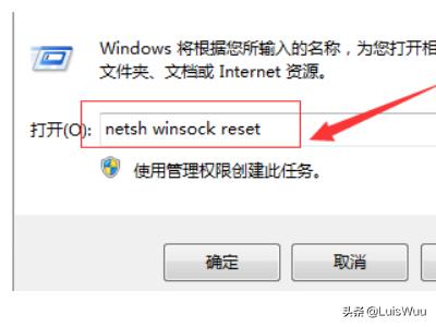 4“开始”-“运行”-输入cmd-输入“netsh winsock reset"按”回车后重启。