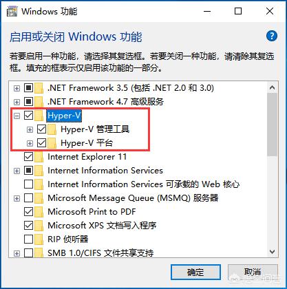 1.这是win10系统自带的一个虚拟机软件,需要在控制面板->windows扩展功能中单独开启才行,基本使用方式和前面2个虚拟机类似,和windows系统本身兼容性非常好: