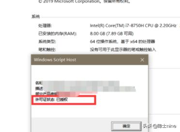 4、点击回车或者点击运行命令图标就可以来运行命令,这时就会弹出来一个会话框,我们可以在其中看到许可证状态:已授权表示我们的win10是正版的。