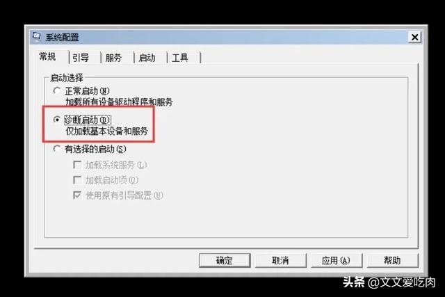 6、可以看到启动选择是"诊断启动",即安全模式。