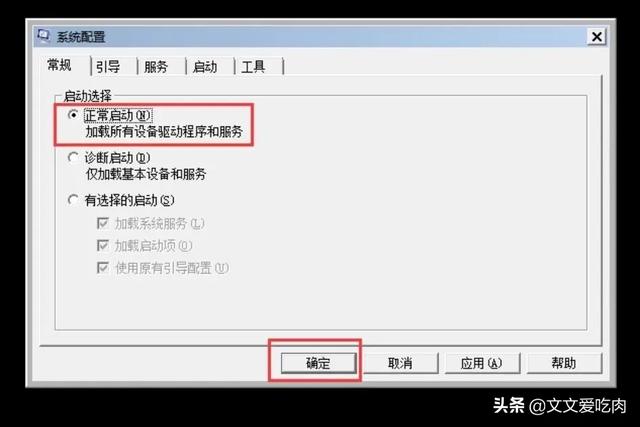 7、我们将启动选择修改为"正常启动",点击"确定"。