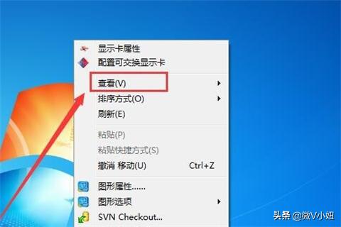 2.接下来,在桌面上空白处,鼠标右键单击,找到“查看”,如下图所示;