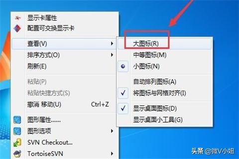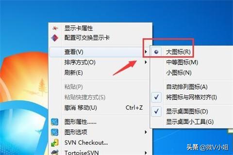 4.如果要将图标变大,需要选择大图标,即下图中箭头指示处,鼠标右键单击此处;