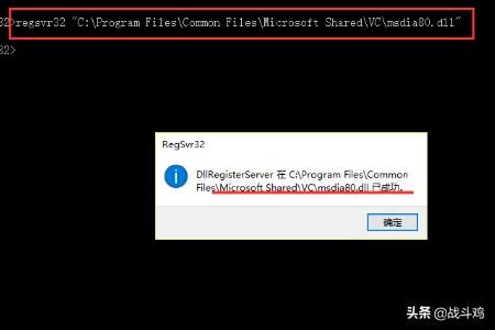 5、输入如下命令回车:regsvr32 "C:Program FilesCommon FilesMicrosoft SharedVCmsdia80.dll";