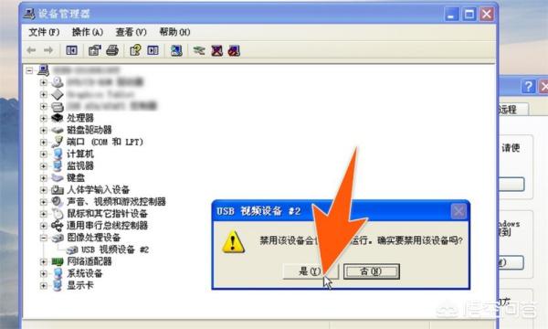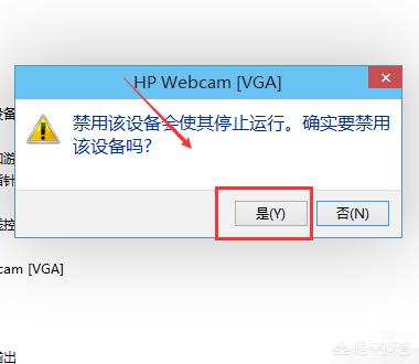 (5)点击禁用后,弹出禁用设备的提示对话框,点击是就关闭了笔记本摄像头。