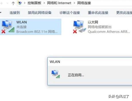 6、接下来将显示无线网卡设备正在启用中,我们耐心等待无线网卡设备启用即可。
