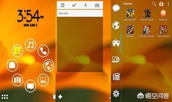 下面介绍一下它是如何工作的。最开始的时候你会在主屏看到一个环形功能圈,你可以自己规划任何一款App,方便快速打开那些你经常使用的应用。在这儿,你还能使用一个加强型的应用抽屉和3个主屏位置的Widget。