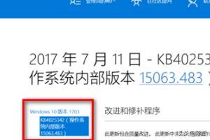 2、此时会在默认浏览器进入微软的官方界面,windows10历史更新纪录,在左侧的目录中,选择第一个,也就是最新的一个,点击一下,会进入到该补丁的更新信息内容,滑动鼠标滚轮。