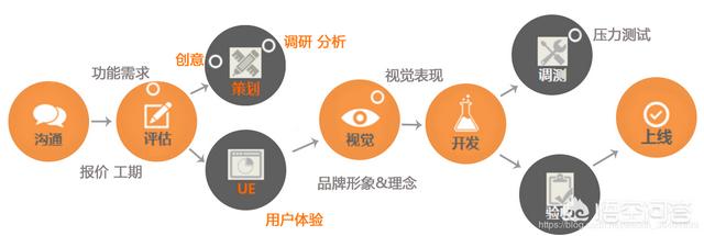首先第一步:商务洽谈。先了解客户需求,根据客户咨询做出初步方案,客户核实没问题后给出报价。客户确认后前面合同并付意向金。第二步:项目策划。产品经理对产品策划设计,原型设计规划,功能逻辑梳理,项目正式启动。第三步:UI设计第四部:程序开发第五步:测试第六步:上线最后一步:后期维护