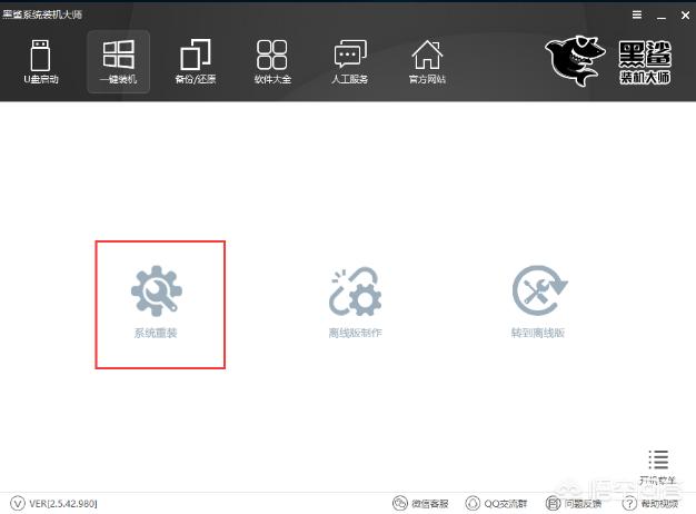 打开黑鲨装机大师,点击【一键装机】,这里选择【系统重装】