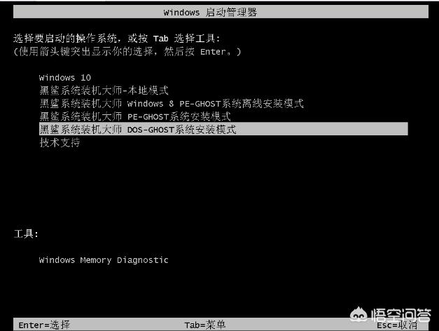 重启完成后点击选择“黑鲨系统装机大师DOS-GHOST系统安装模式”进入安装
