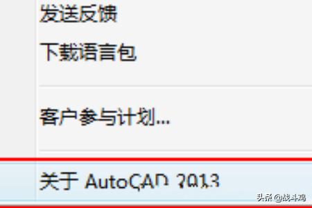 8、进入程序后选择窗口右上角“帮助”下拉列表按钮,选择“关于AutoCAD2013”选项,如图所示。