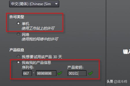 4、选择许可证类型并输入产品信息,输入上面给大家提供的序列号及产品密匙。