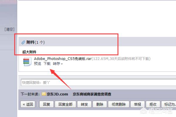 3、此时页面跳转以后可以看到该邮件包含的附件中的超大附件,点击下载按钮。