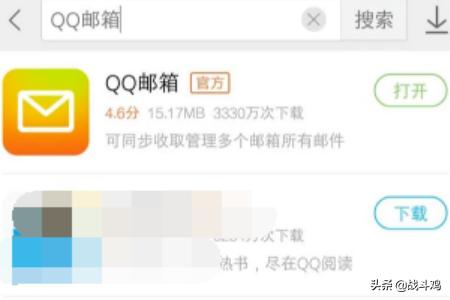 2、在搜索里输入“qq邮箱”,之后选择第一个官方的qq邮箱,进行下载安装。