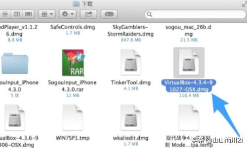 2、下载好了以后,在Finder中的下载目录中,找到“VirtualBox-4.3.4-91027-OSX.dmg”文件,运行安装,如图所示。