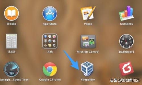 6、安装完成以后,在系统的LanuchPad中可以找到Virtual Box的应用图标,点击打开它,如图所示。