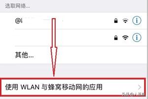 4、第四步在无线局域网界面中点击【使用WLAN与蜂窝移动网络的应用】,如图所示;