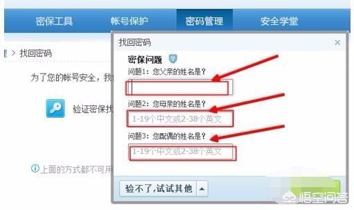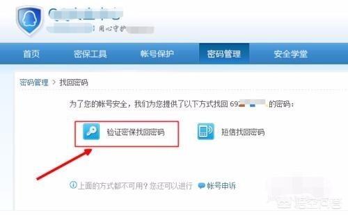 5、点击“验证密保找回密码”,选择密保问题,输入答案后点“验证”。
