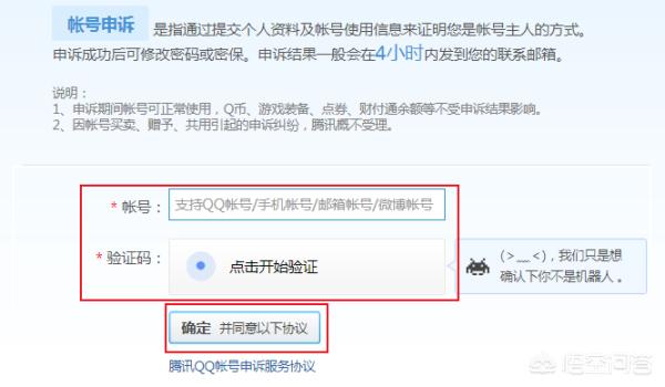1、 先打开QQ安全中心,点击密码管理中的“账号申诉”,输入你的QQ号并填写验证码,然后点击“同意并确认”。