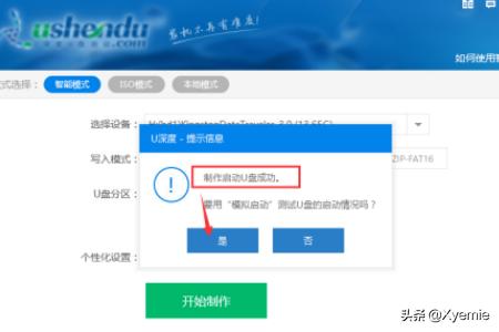 6、耐心等待一段时间,当弹出【制作启动U盘成功】的提示窗口后,证明已经制作成功啦,点击【是】,可以模拟启动U盘PE。
