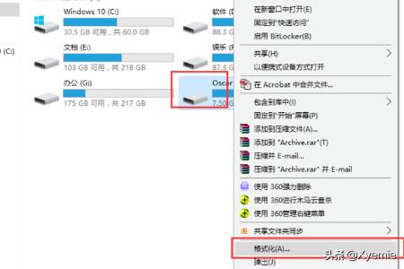 1、把U盘先格式化一样,先把U盘插入到电脑的USB接口上,在我的电脑中就可以看到U盘了。然后鼠标右键U盘,点击【格式化】。