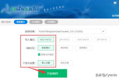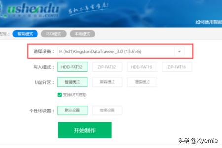 4、启动U盘PE制作工具,设备选择我们刚格式化好的U盘,写入模式、U盘分区、个性化都不需要设置,默认就好,直接点击【开始制作】。