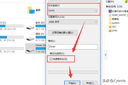 格式化要选择【NTFS】格式,因为NTFS格式支持单个文件大于4G的文件,现在的WIN10系统镜像一般都大于4G的哦。