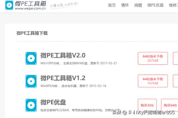 第一步:这里我下载的是微PE工具箱V2.0 64位版本,现在电脑一般选这个就好了。
