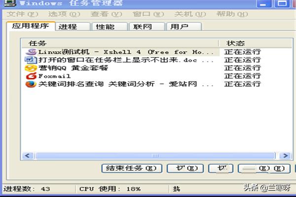 出现问题现象,是打开过很多任务。但是任务栏就是不显示打开的项目,但是用TAB+ALT 或者任务管理器 应用程序里面可以看到任务项目。如下图: