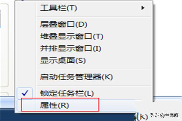 解决办法,显示任务栏找到任务栏,右键。。属性。。 如下图