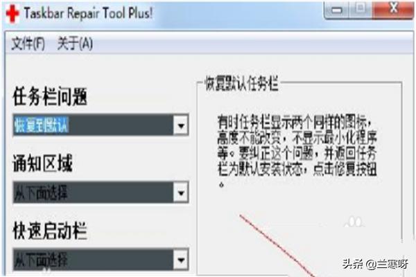 任务栏修复 如果按照上述方法还不行,可能是您电脑系统异常导致任务栏出问题了。可以到网上搜索下载任务栏修复工具。(taskbar repair tool plus)任务栏修复下载之后,如下图