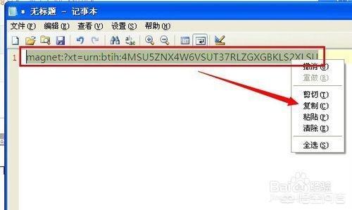 打开磁力链接存放的文本,选中磁力链接,然后右键--->复制