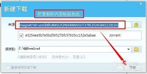 把复制的磁力链接粘贴到“来源”一栏中,然后点击下载。这样就可以啦!